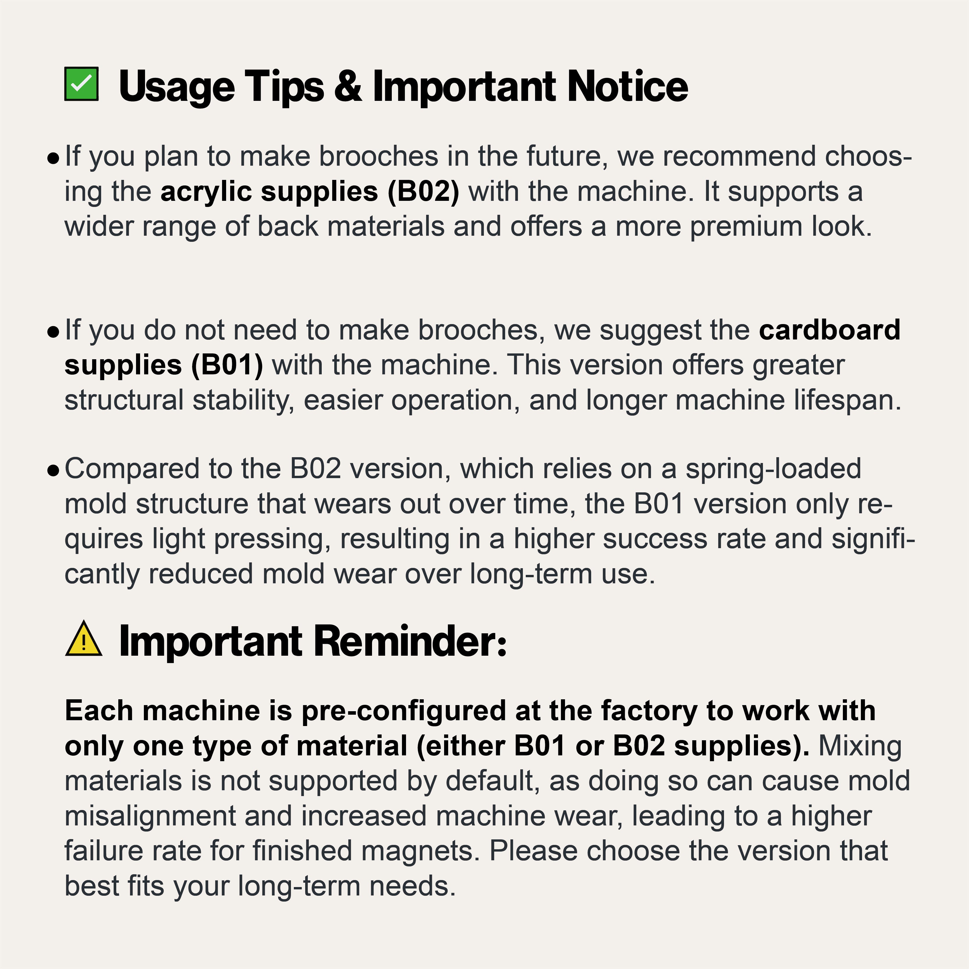 📅 30-Day Guarantee If your machine has any non-human-caused issues within 30 days of receipt: 1. Video Support: We will provide video tutorials to guide you in fixing the issue. 2. Replacement Parts: If needed, we will ship replacement parts free of charge. 3. New Machine / Refund: If the issue still cannot be resolved, we will send a new machine or issue a full refund.