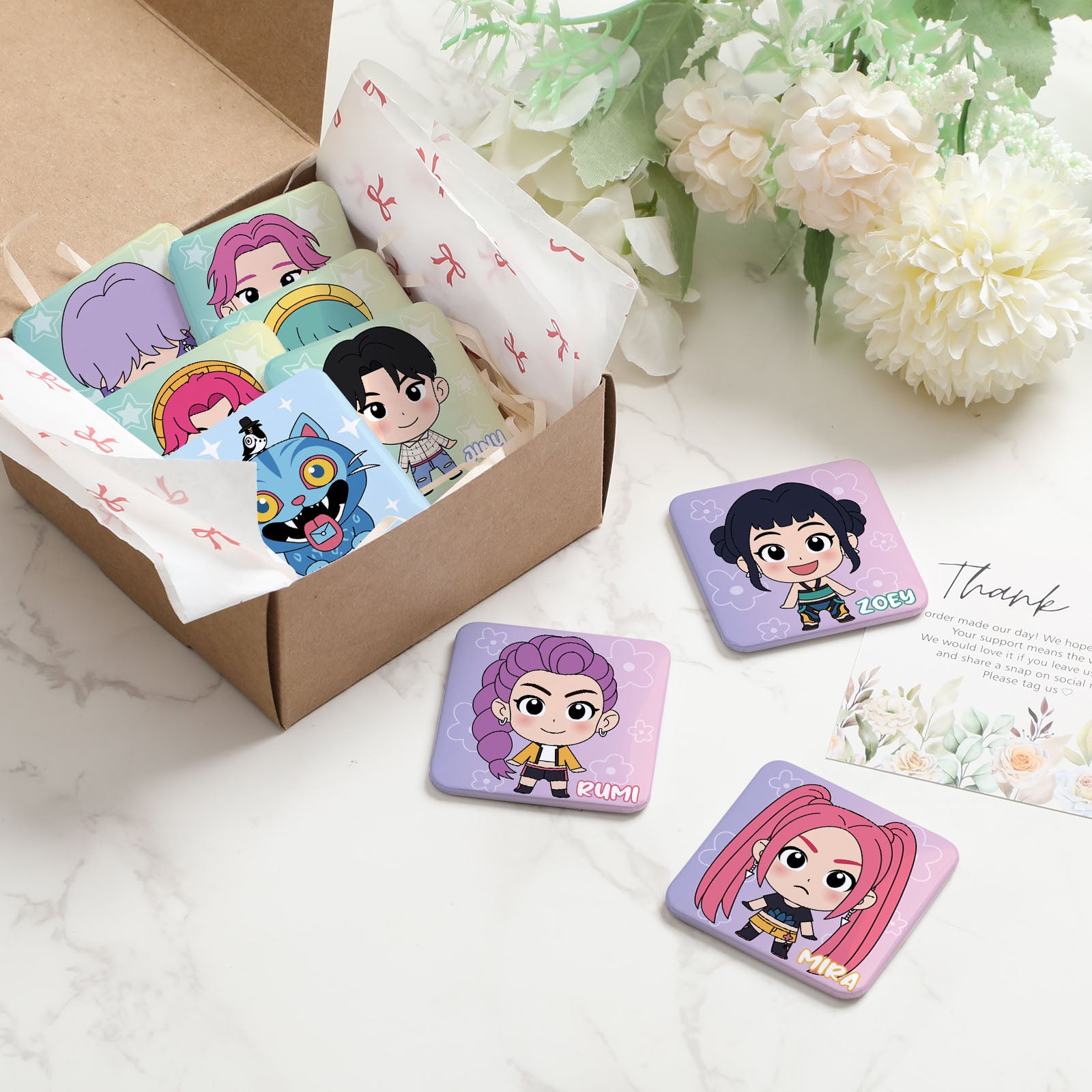 I bought these magnets for my daughter who’s a huge Kpop Demon Hunter fan — and she loves them! The colors are vibrant, the design is super cool, and they stick really well on our fridge. Definitely worth it!